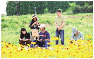 国外艺术家在莲花田园写生。