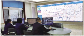 调度中心工作人员通过调度系统监测供水管网运行情况。