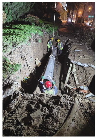 工作人员连夜维修供水主管道。