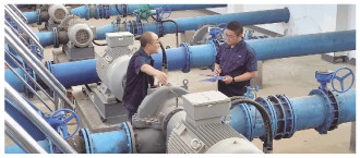 水厂工作人员检修水泵。