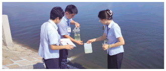 水质检测人员在宋化泉水库取水化验。