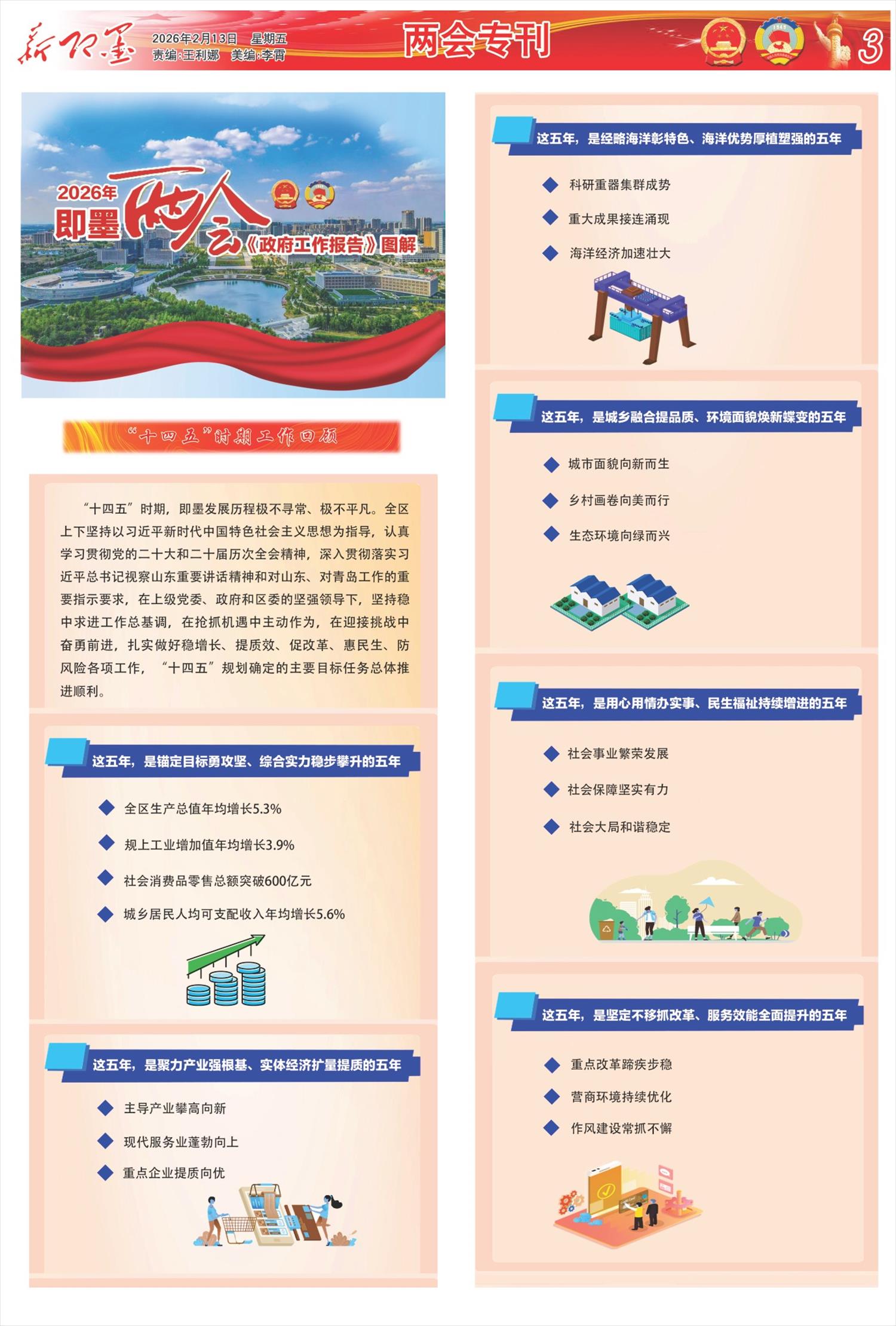 会上印发了青岛市即墨区国民经济和社会发展第十五个五年规划纲要草案、青岛市即墨区2025年国民经济和社会发展计划执行情况与2026年计划草案的报告、青岛市即墨区2025年预算执行情况和2026年预算草案的报告、区政府关于全区2025年民生实事项目完成情况的报告、关于全区2026年民生实事候选项目形成情况的报告,提请大会审查。