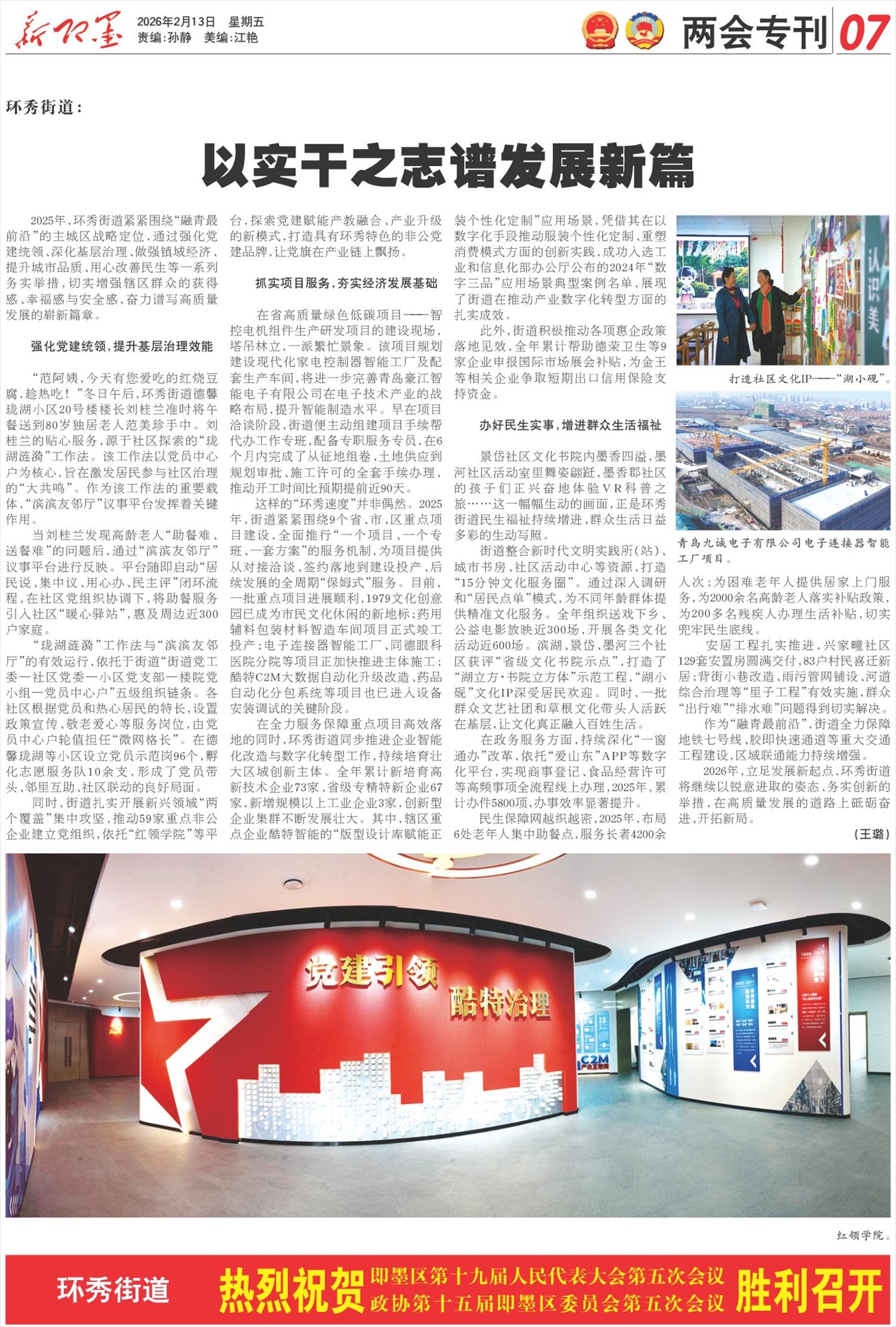 2025年,环秀街道紧紧围绕“融青最前沿”的主城区战略定位,通过强化党建统领、深化基层治理、做强镇域经济、提升城市品质、用心改善民生等一系列务实举措,切实增强辖区群众的获得感、幸福感与安全感,奋力谱写高质量发展的崭新篇章。