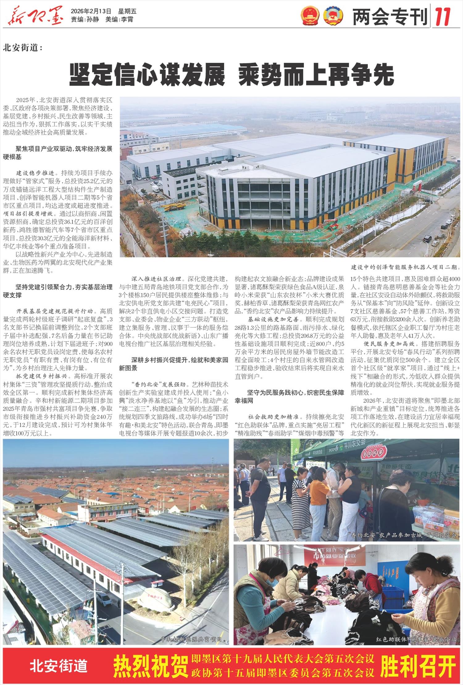 2026年,北安街道将聚焦“即墨北部新城和产业重镇”目标定位,统筹推进各项工作落地生效,在建设活力宜居幸福现代化新区的新征程上展现北安担当、彰显北安作为。