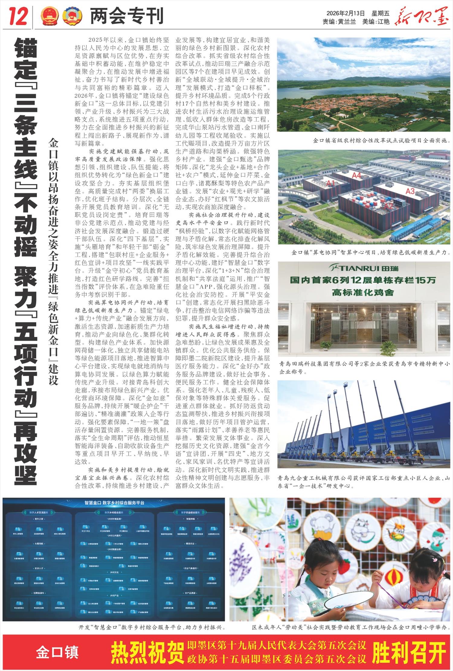 2025年以来,金口镇始终坚持以人民为中心的发展思想,立足资源禀赋与区位优势,在夯实基础中积蓄动能,在维护稳定中凝聚合力,在推动发展中增进福祉,奋力书写了新时代乡村善治与共同富裕的精彩篇章。迈入2026年,金口镇将锚定“建设绿色新金口”这一总体目标,以党建引领、产业升级、乡村振兴为三大战略支点,系统推进五项重点行动,努力在全面推进乡村振兴的新征程上闯出新路子、展现新作为、谱写新篇章。