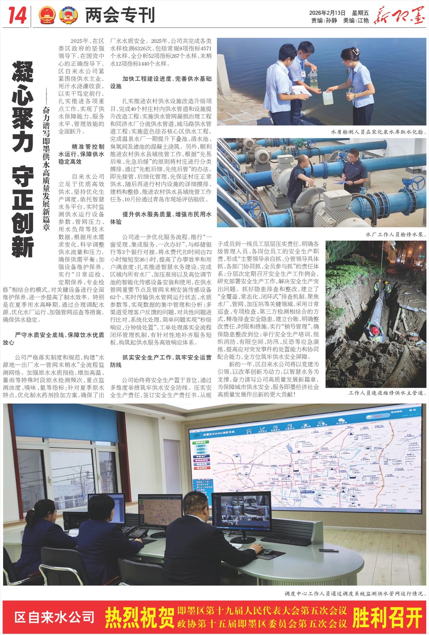 2025年,在区委区政府的坚强领导下,在国资中心的正确指导下,区自来水公司紧紧围绕供水主业,用汗水浇灌收获,以实干笃定前行,扎实推进各项重点工作,实现了供水保障能力、服务水平、管理效能的全面跃升。