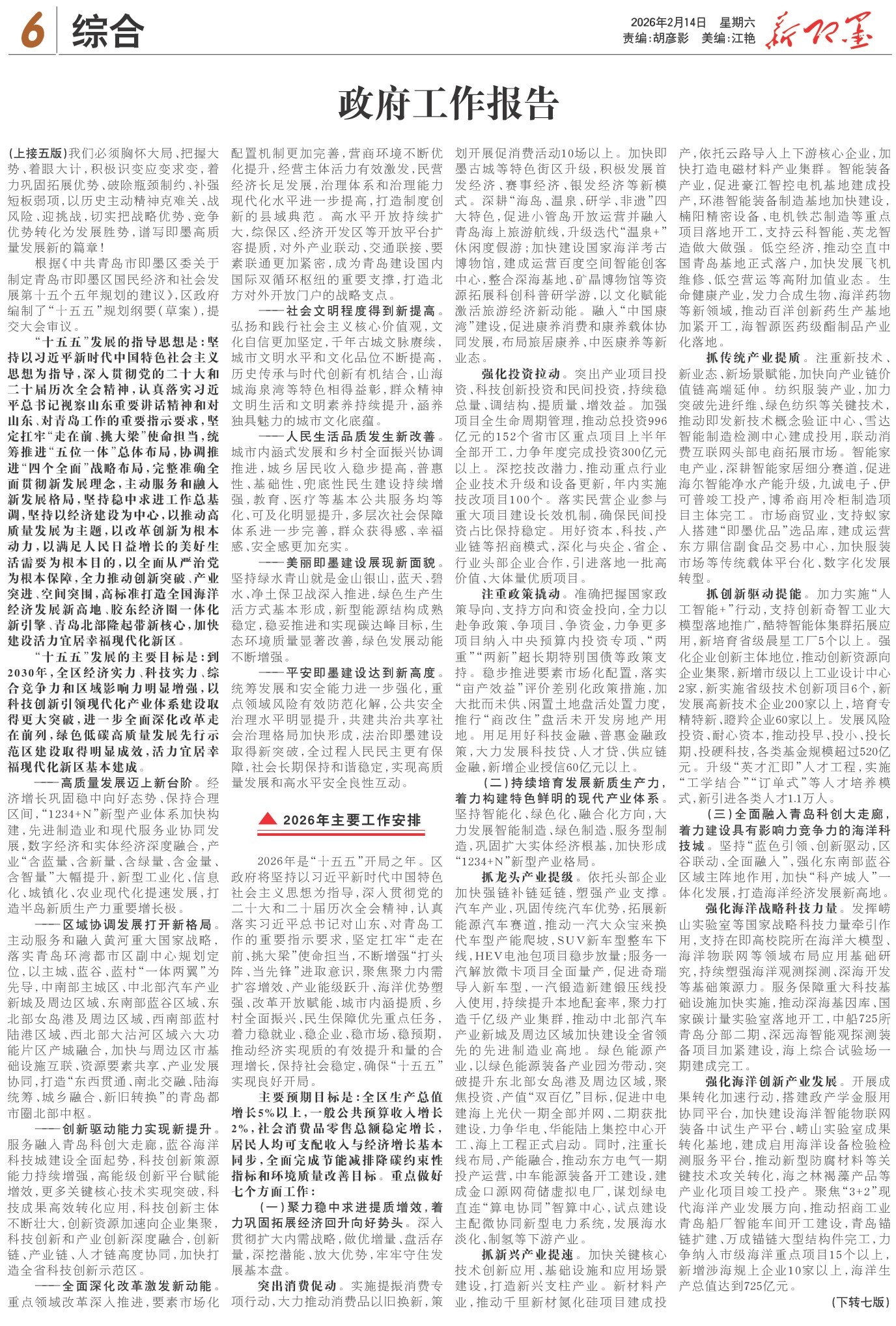 新即墨2026年02月14日06版面