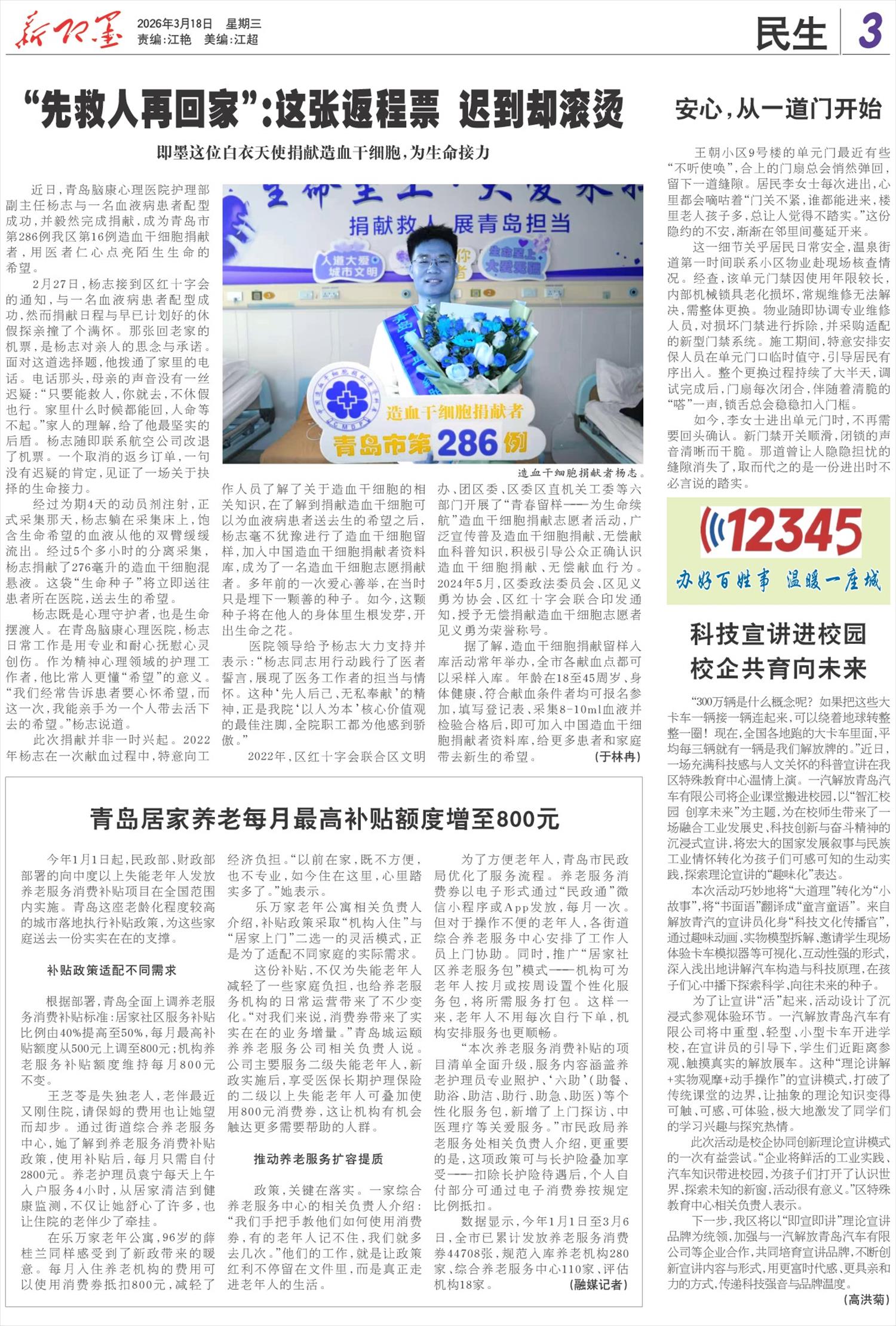 “先救人再回家”:这张返程票 迟到却滚烫 即墨这位白衣天使捐献造血干细胞,为生命接力   近日,青岛脑康心理医院护理部副主任杨志与一名血液病患者配型成功,并毅然完成捐献,成为青岛市第286例我区第16例造血干细胞捐献者,用医者仁心点亮陌生生命的希望。