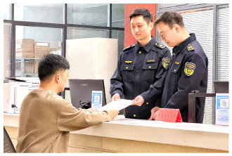 生态环境部门审批人员将环评批复递到企业负责人手中。