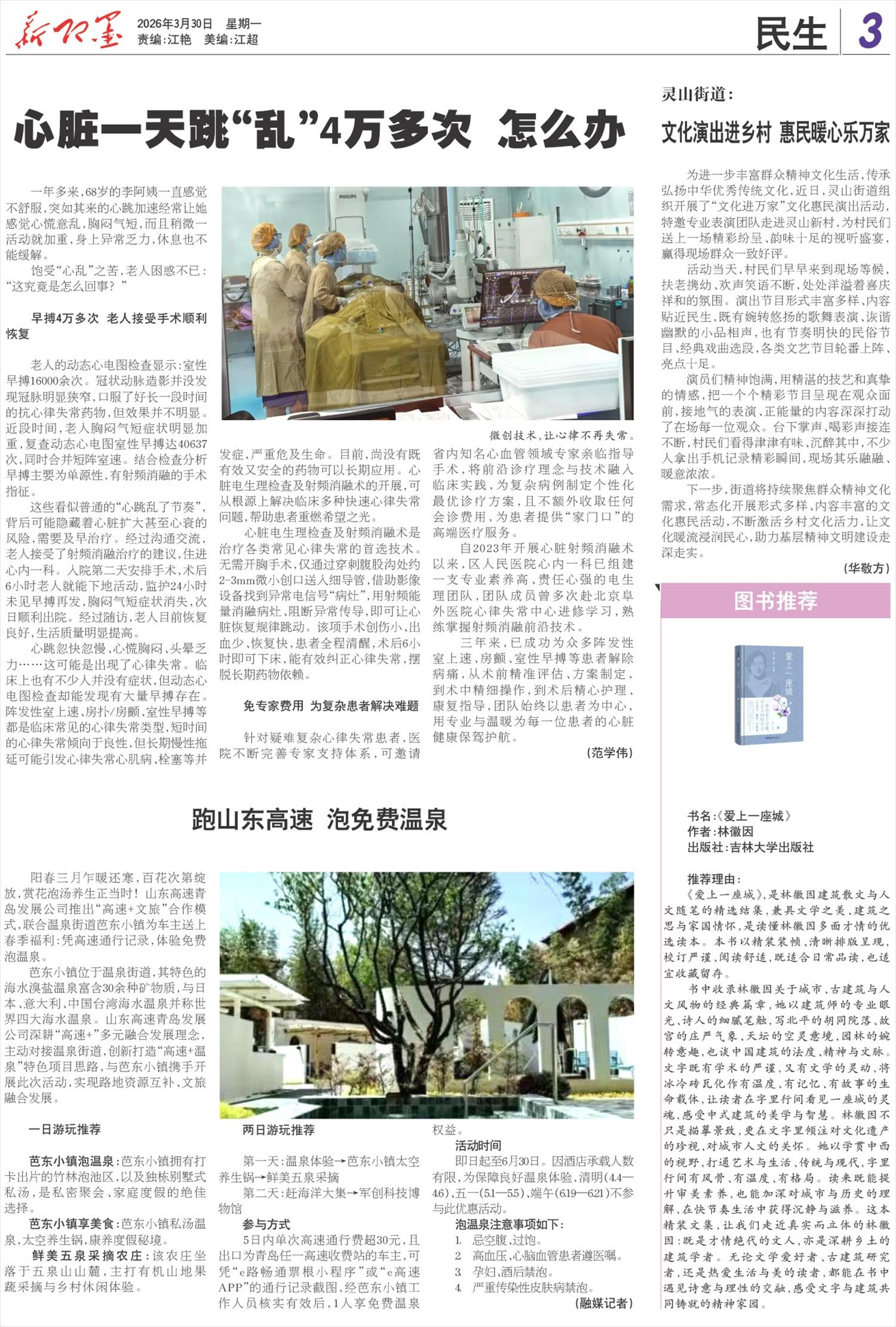 阳春三月乍暖还寒,百花次第绽放,赏花泡汤养生正当时!山东高速青岛发展公司推出“高速+文旅”合作模式,联合温泉街道芭东小镇为车主送上春季福利:凭高速通行记录,体验免费泡温泉。