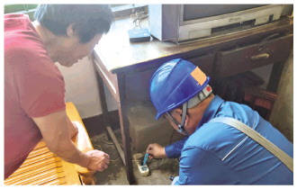 下图为刘永贵上门为居民检查电路。 (黄媛媛)