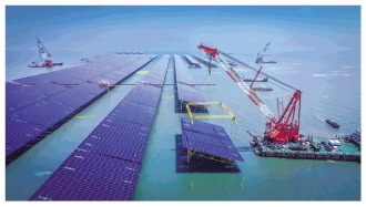 中电建海上光伏项目吊装现场。孙毅 摄