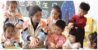 “掌心相对,手指并拢,相互揉搓;手心对手背沿指缝相互揉搓;掌心相对,双手交叉指缝相互揉搓……”4月7日是世界卫生日,这天桃源河路幼儿园开展“学习健康洗手”主题教育活动,教师以幼儿兴趣为出发点,通过讲故事、看视频、诵儿歌等形式让幼儿知道手部卫生的重要性,自小养成良好的卫生习惯。 (张涛)